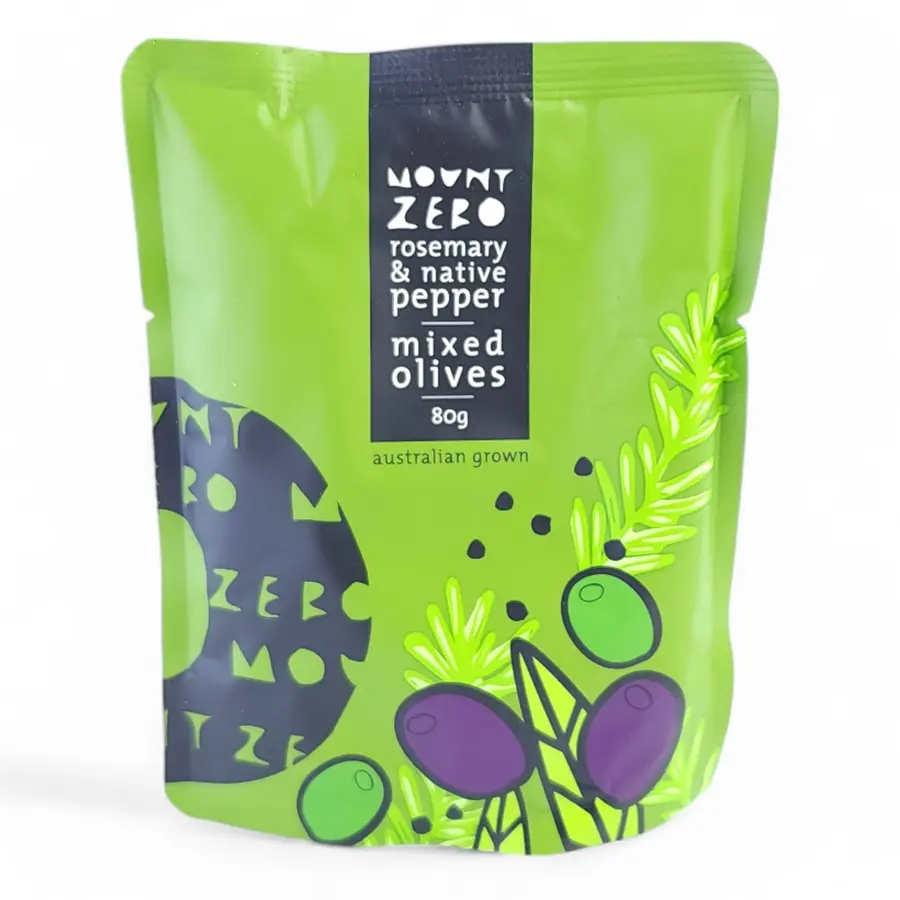 Mount Zero Rosemary & Native Pepper Green Olives 80g